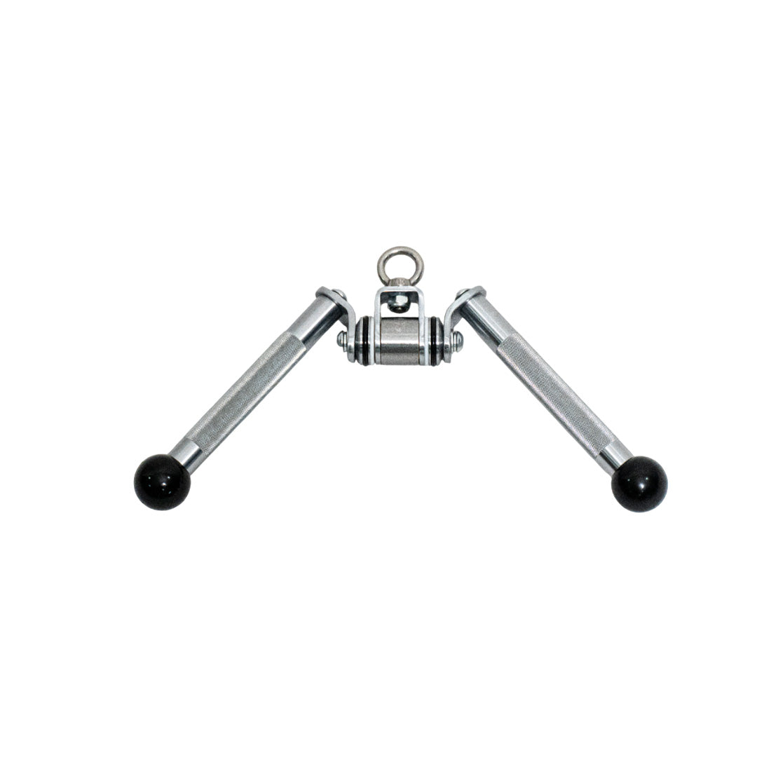 A rotating V bar designed for close-grip pulldowns and rows, encouraging strong lat engagement and controlled reps.