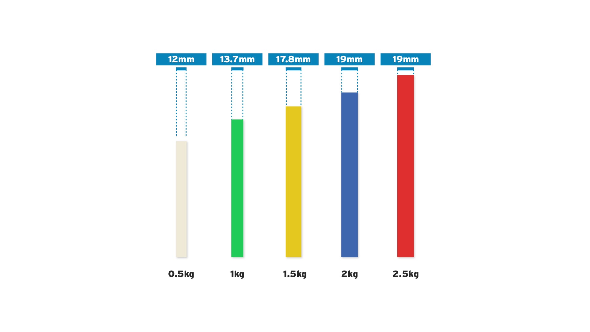 Available in pairs ranging from 0.5kg up to 2.5kg.